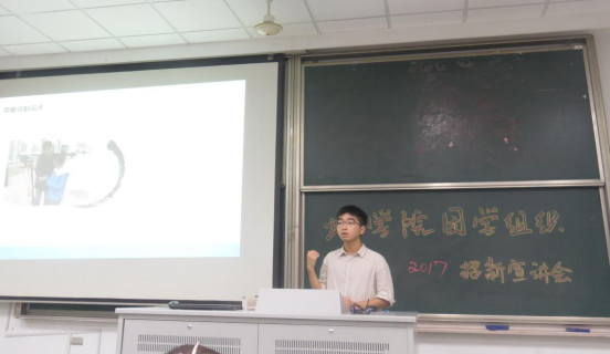 2017年9月8日晚,地球科学与工程学院于高B211顺利召开了四大组织的宣讲会 。16级辅导员王宁可、17级辅导员陈耕,15级、16级学长学姐和17级全体新生出席了本次活动。大会由16级徐鑫学长主持。