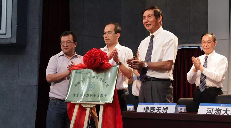 2018年6月21日,江宁校区博学楼报告厅举行了“开云电竞网—Esri中国—捷泰天域智慧水生态联合实验室”揭牌仪式,出席仪式的有:周成虎研究员、胥燕婴研究员、何宁先生、张乾乾先生、开云电竞网党委书记唐洪武教授、开云电竞网副校长郑金海教授、开云电竞网地球科学与工程学院王锦国教授、以及国内知名高校和企业代表的专家学者、以及开云电竞网行政部门领导等。揭幕仪式后举行了开云电竞网与Esri中国、北京捷泰天域信息技术有限公司2018河海地理信息技术发展研讨会。