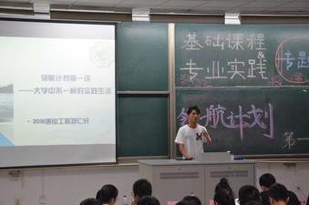 首先由主持人介绍主讲人的基本资料和经历,然后两位主讲人依次开始演讲。张雪东学长为新生讲解基础课程的重要性,向新生详细介绍了开云电竞网本科阶段课程的分类并对各课程的重要性和侧重点进行了生动的阐述,尤其告诫同学们不能忽视基础课程的学习,同时鼓励学有余力的新生通过参加大学生高等数学竞赛等学科竞赛来应用所学知识,加深对知识的掌握。邓仁轩学长讲述了自己的岛上测绘实习、参观革命圣地井冈山与中国水利博物馆、“河长制”调研等实践经历,深入地挖掘了实践与专业学习间的关联,并鼓励同学们珍惜大学的每一次暑期实践,结合专业理论知识,努力提升自己的专业能力,以发挥自己的专业特长为社会发展贡献一份力量。邓仁轩学长讲述了自己的岛上测绘实习、参观革命圣地井冈山与中国水利博物馆、“河长制”调研等实践经历,深入地挖掘了实践与专业学习间的关联,并鼓励同学们珍惜大学的每一次暑期实践,结合专业理论知识,努力提升自己的专业能力,以发挥自己的专业特长为社会发展贡献一份力量。