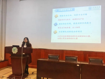 讲座伊始,徐佳老师以比赛背景为切入点,简要介绍了本次比赛的重要意义。随后,依次从比赛对象、竞赛形式、团队组成、竞赛内容与方法、评分标准等方面具体展开,结合往年的优秀作品:“诗与远方”、“IFREE跑步健身APP”、“基于位置服务的人员监管系统——以司法社区矫正为例”、“基于智能拐杖的移动健康实施监护原型系统”,对参赛流程以及作品成果汇报步骤做了细致讲解。与此同时,为帮助同学们更加高效的完成比赛作品,向同学们提出了“好心态、积极备赛”,“有目标、有计划”,“多交流、多汇报”三点建议,鼓励同学们踊跃报名,在比赛中锻炼和提升自己的实践动手能力。