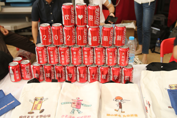 志愿者工作剪影 定制可乐及文创展示区
