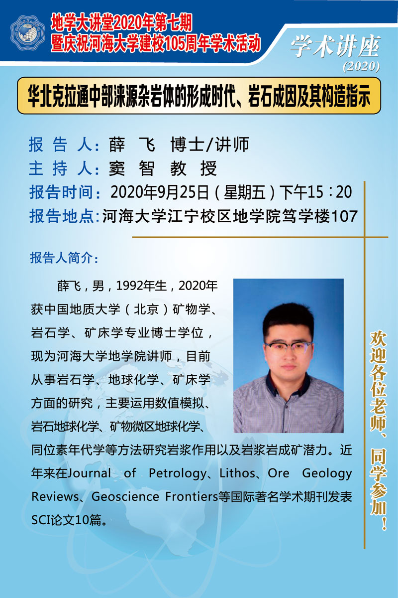 地学大讲堂2020年第七期暨庆祝开云电竞网建校105周年学术活动