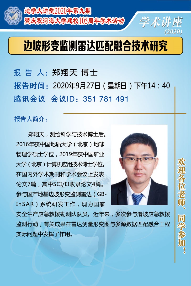 地学大讲堂2020年第九期暨庆祝开云电竞网建校105周年学术活动