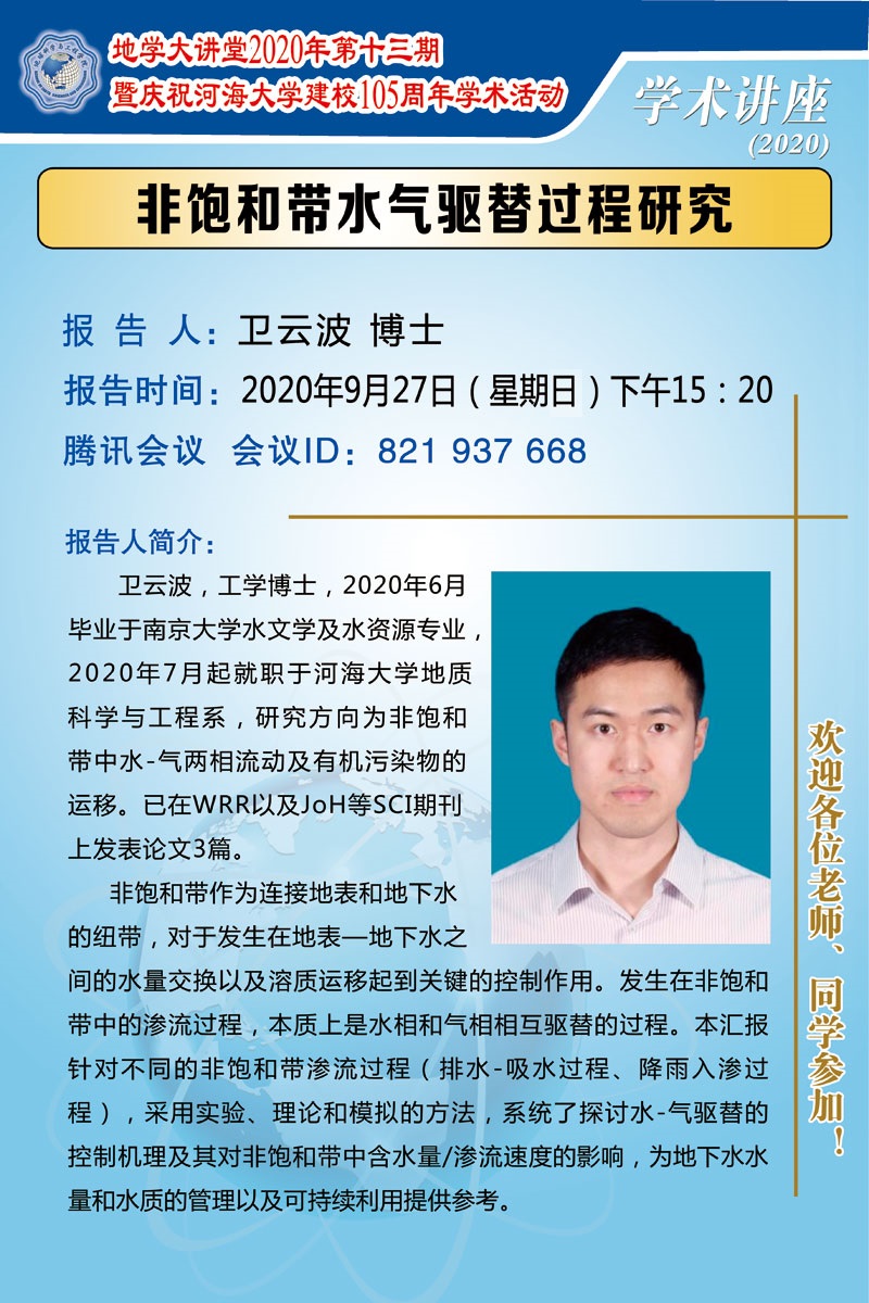地学大讲堂2020年第十三期暨庆祝开云电竞网建校105周年学术活动