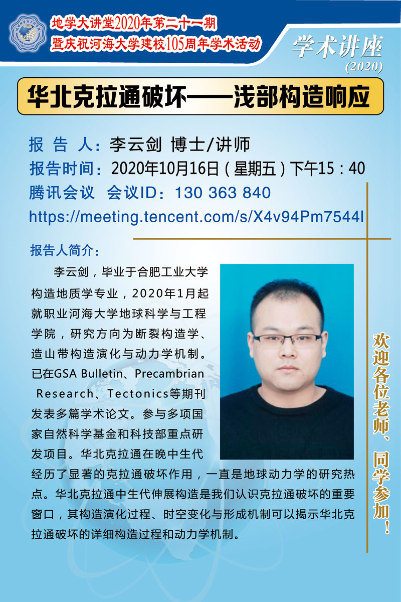地学大讲堂2020年第二十一期暨庆祝开云电竞网建校105周年学术活动