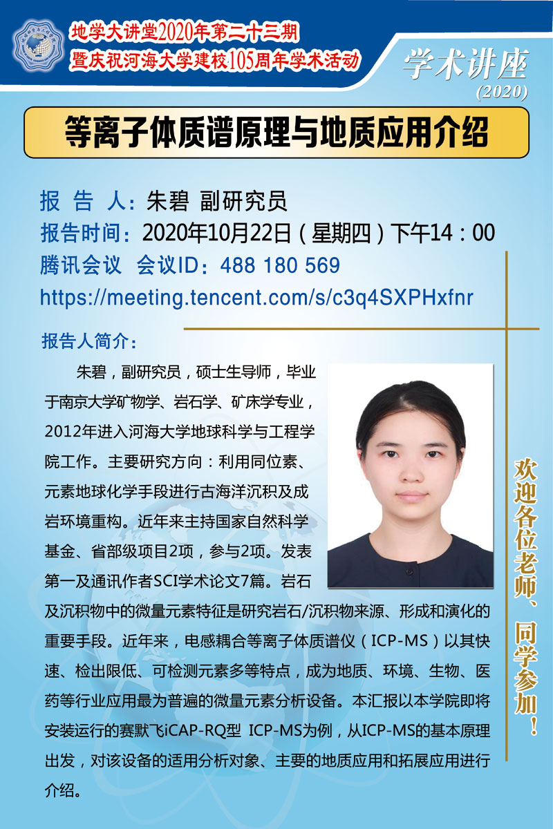 地学大讲堂2020年第二十三期暨庆祝开云电竞网建校105周年学术活动