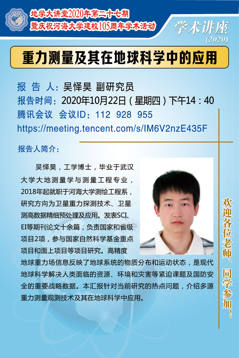 地学大讲堂2020年第二十七期暨庆祝开云电竞网建校105周年学术活动