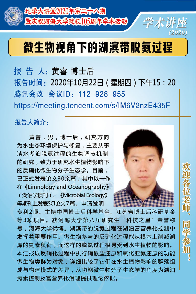 地学大讲堂2020年第二十八期暨庆祝开云电竞网建校105周年学术活动
