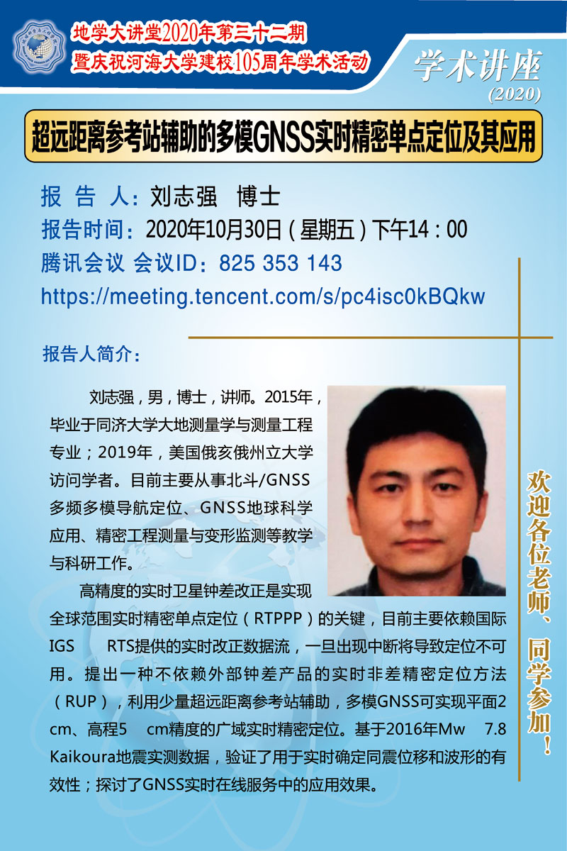 地学大讲堂2020年第三十二期暨庆祝开云电竞网建校105周年学术活动