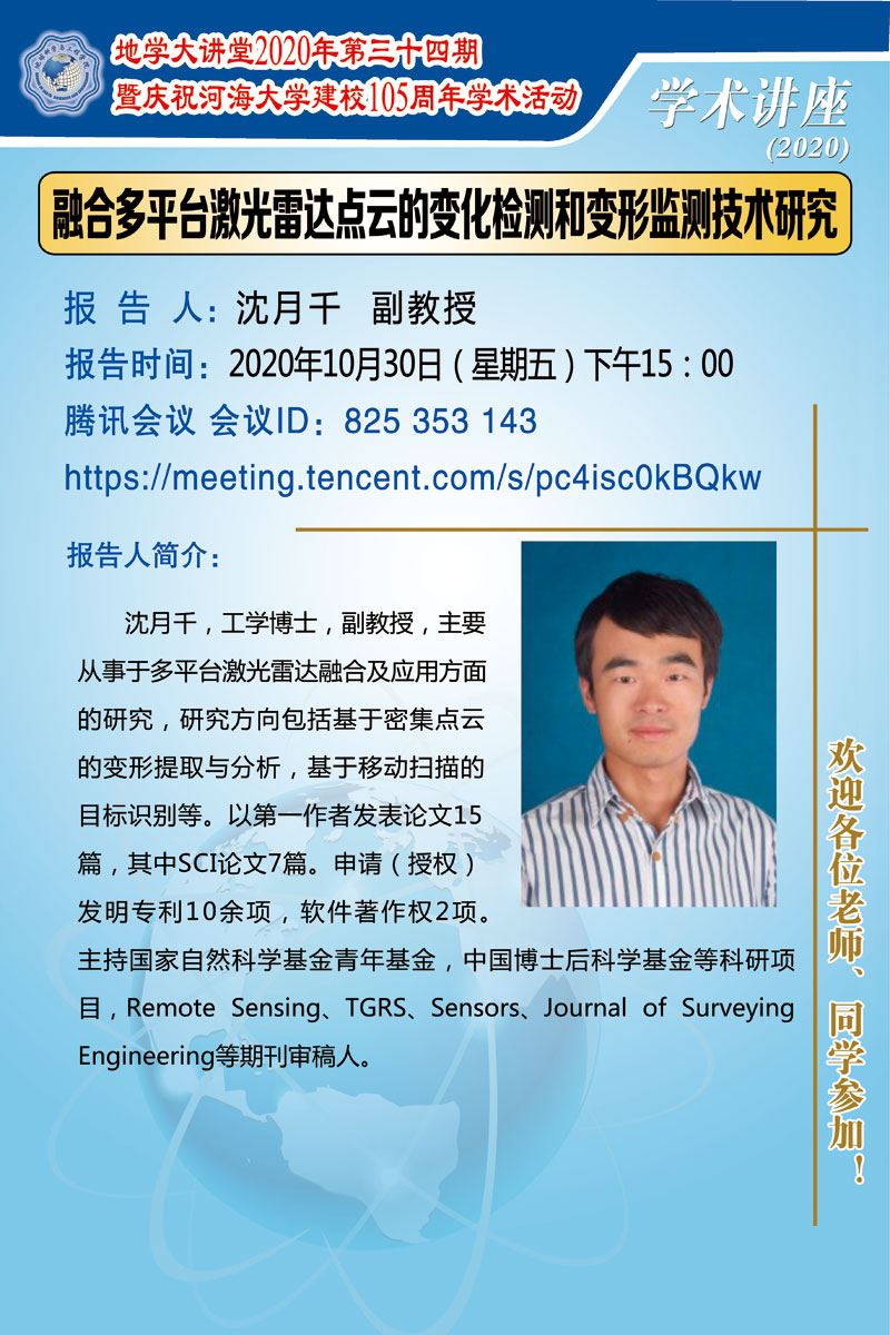 地学大讲堂2020年第三十四期暨庆祝开云电竞网建校105周年学术活动