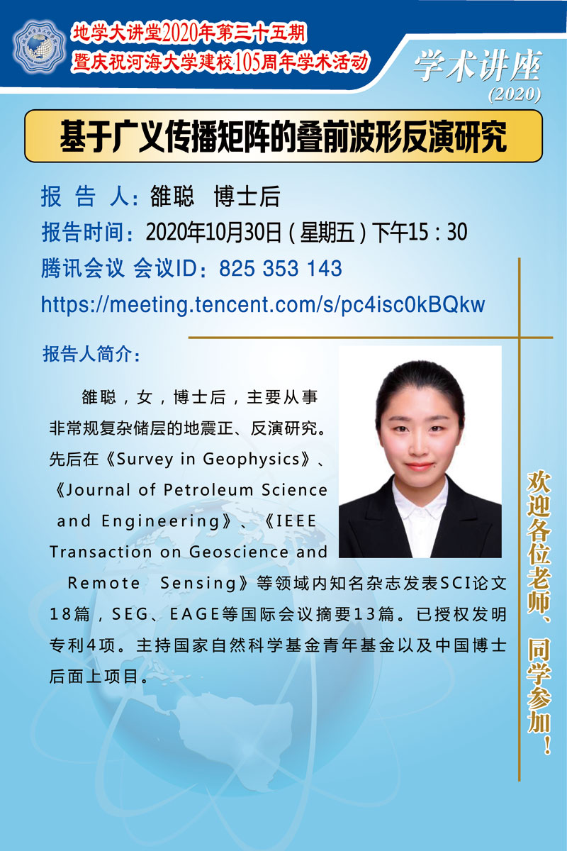 地学大讲堂2020年第三十五期暨庆祝开云电竞网建校105周年学术活动