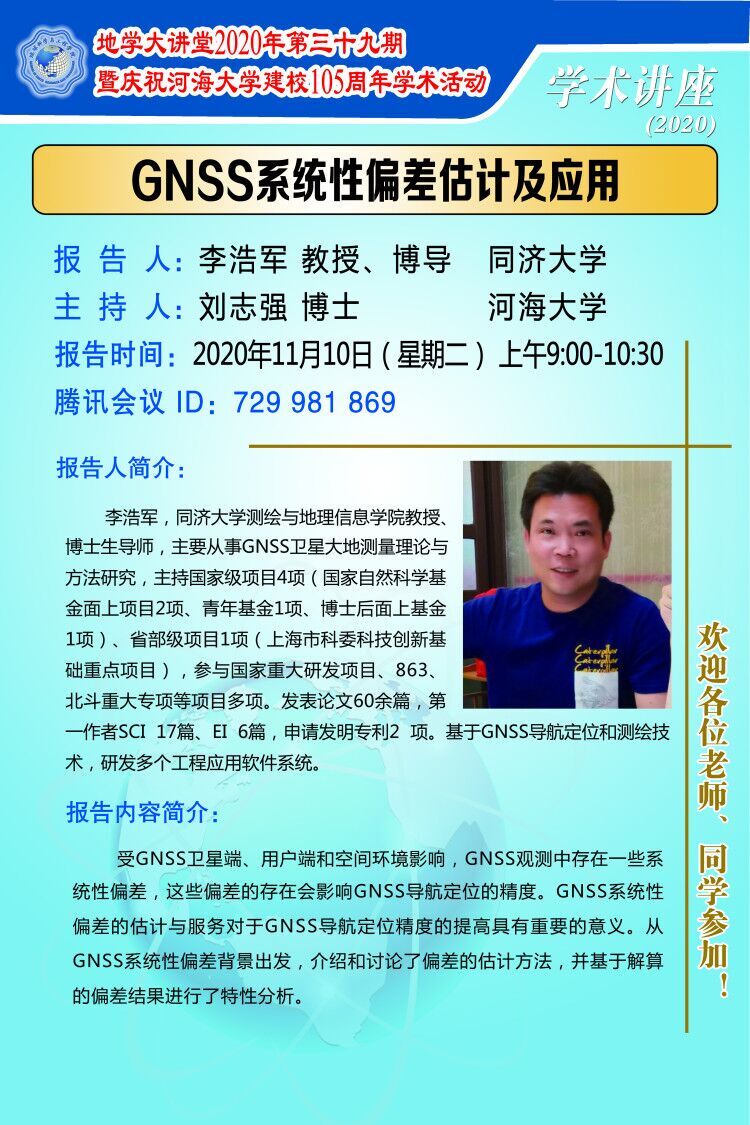 地学大讲堂2020年第三十九期暨庆祝开云电竞网建校105周年学术活动