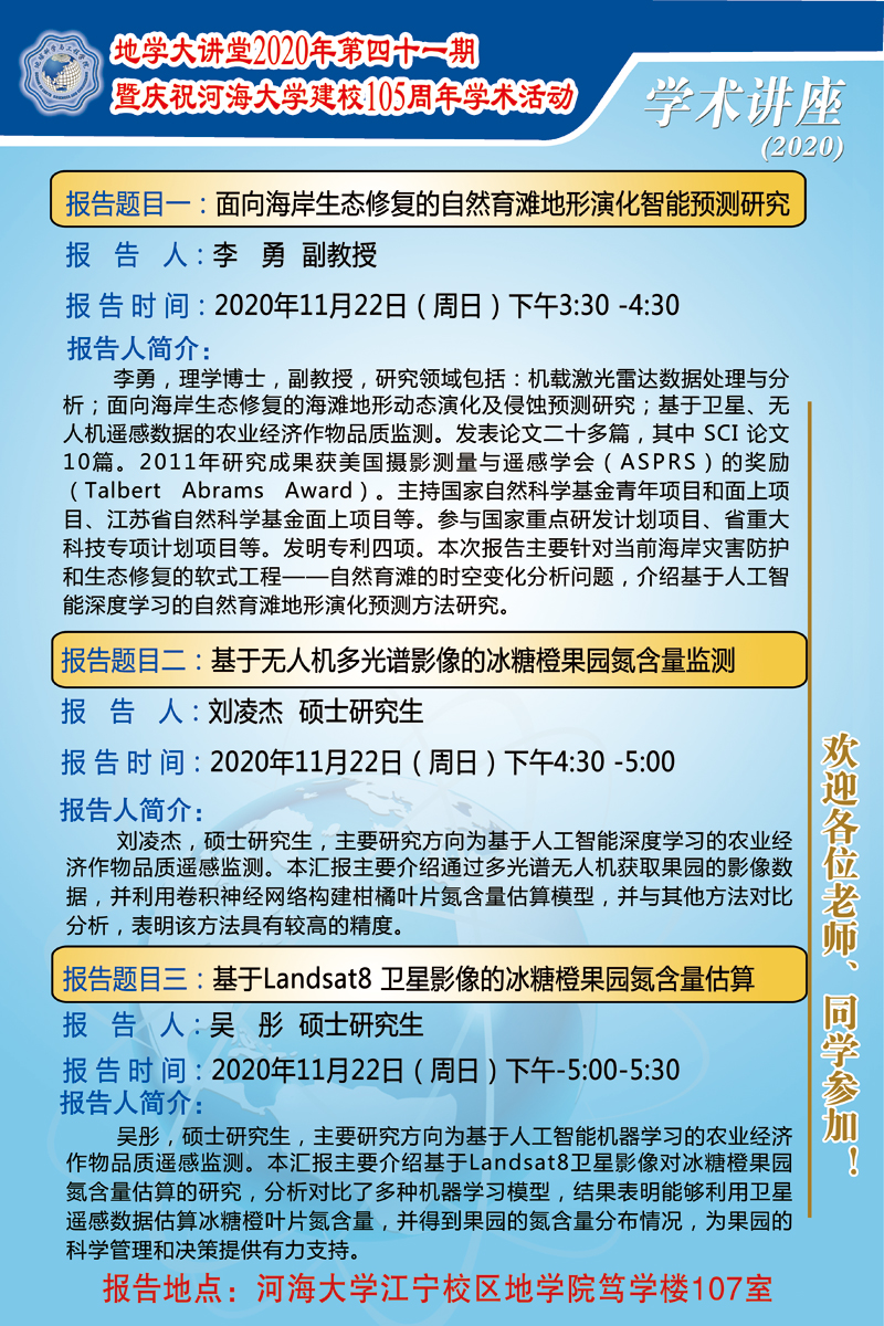 地学大讲堂2020年第四十一期暨庆祝开云电竞网建校105周年学术活动