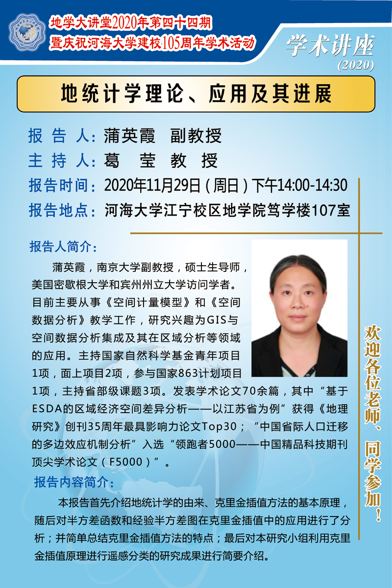 地学大讲堂2020年第四十四期暨庆祝开云电竞网建校105周年学术活动