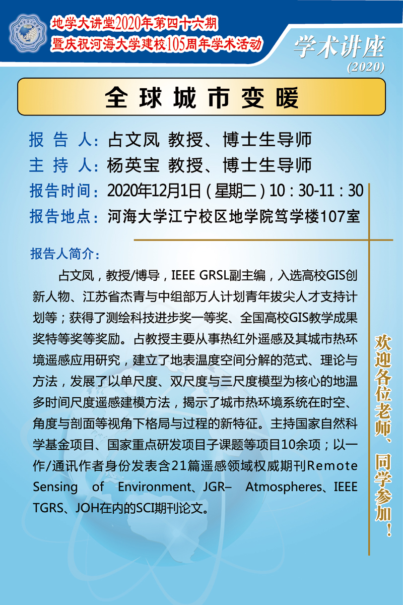 地学大讲堂2020年第四十六期暨庆祝开云电竞网建校105周年学术活动