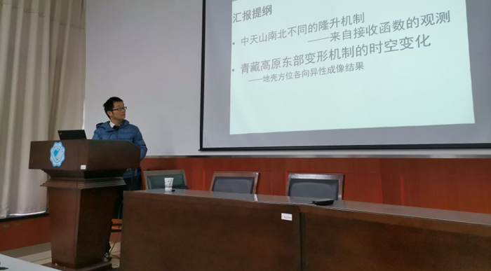 报告详细介绍了通过接收函数成像和地壳方位各向异性成像揭示岩石圈结构的地球物理方法在中国西部中天山和青藏高原东部地区的应用实例。中天山的研究实例中,采用接收函数方法研究中天山Moho面的几何形态和地壳各向异性,并结合XKS震相的分裂结果,探讨了天山新生代造山运动的动力学过程;青藏高原东部地区的研究实例中,采用地震波方位各向异性方法研究青藏高原东部地壳和岩石圈地幔的地震波各向异性特征,提出了青藏高原岩石圈变形的阶段性演化模式。鲍学伟教授耐心解答同学疑问并于与会场老师进行学术探讨,为师生的相关研究提供了有效的建议。