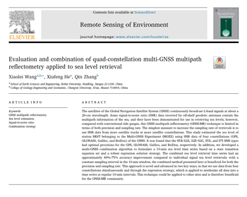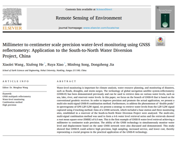 近期,我院副教授王笑蕾以第一作者在《环境遥感》(RSE, Remote Sensing of Environment)杂志上连续发表论文2篇,题为《基于GNSS反射遥感的毫米级至厘米级的水位监测:在南水北调工程中的应用》(2021年)和《基于多模多频GNSS反射遥感的潮位反演评估与融合》(2019年)。RSE主编和审稿专家们认为:“相关研究提出了一套科学、简便、有效的多模多频融合算法,能引起GNSS反射遥感领域读者的广泛兴趣”。RSE为地球观测领域期刊,出版有关遥感研究的理论、科学、应用和技术方面的成果,在地球与行星科学(大类)251种SCI学术刊物中排名第一,2021年影响因子为10.164。