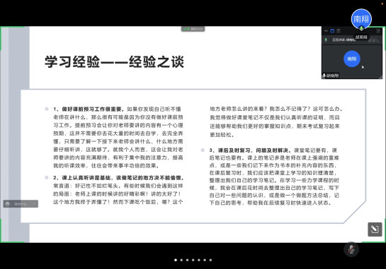 2022年4月26日19:00,地学院2020级于线上举办“学有所长”学习经验交流会,本次交流会由20级辅导员程萌老师主持,20级百余名本科生参与,19级优秀学生代表洪榆萌、胡南翔两位同学分享专业课、创训等方面学习经验。
