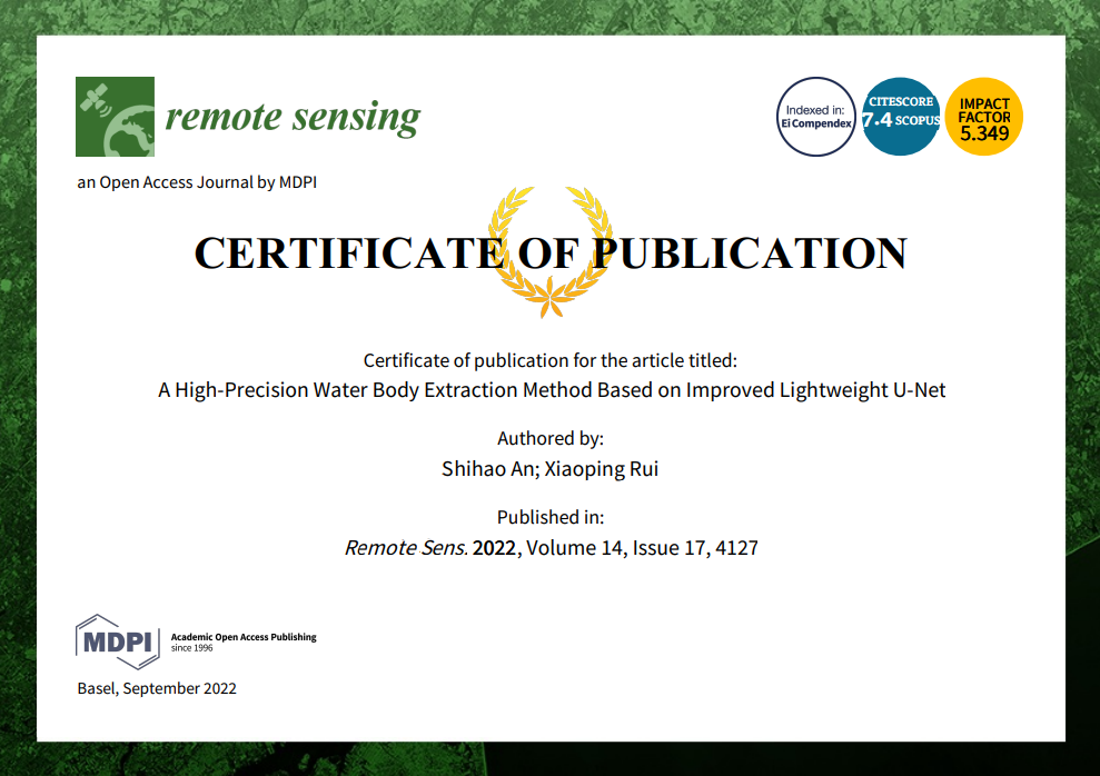 安诗豪,开云电竞网地球科学与工程学院测绘工程专业2019级本科生,汉族,中共预备党员,现已保研至中国科学院大学空天信息研究院。曾获国家奖学金、小米奖学金、安徽邦泰优秀学生奖学金等多项奖学金;第六届全国高等学校大学生测绘技能大赛程序设计一等奖、第七届全国高等学校大学生测绘技能大赛开发设计一等奖、第十二届全国大学生数学竞赛三等奖。专注学科前沿,围绕遥感技术展开研究,在SCI 期刊《Remote Sensing》2022年第14期上发表论文1篇,申请国家发明专利1项(受理);积极投身志愿服务,累计志愿服务超过300小时。