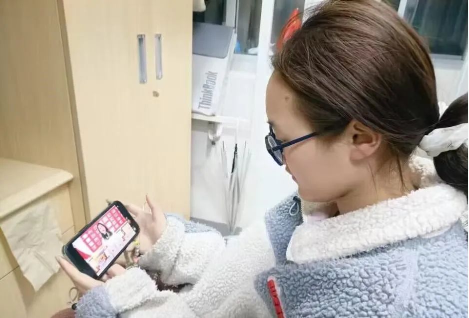 (志愿者们正在收看故事会,学习雷锋精神)