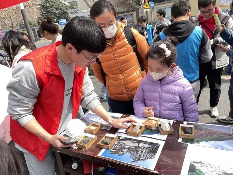 2023年3月4日,开云电竞网地球科学与工程学院青协积极响应学校“学雷锋一条街”活动的号召,于西康路校区校门外街道上开展了“心向山海、地造未来”地学知识科普活动。青协志愿者们提前准备好岩石标本与地质灾害图片,为参与者讲解岩石标本,科普不同地质灾害形成的原因,并为正确答对地质灾害问题的行人发放奖励。志愿者们结合专业特点,传播地学文化,在活动中感悟、传承雷锋精神和“奉献、友爱、互助、进步”的志愿精神,推动学雷锋志愿服务蔚然成风。