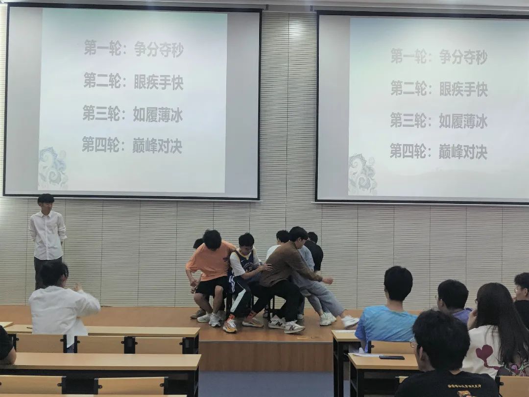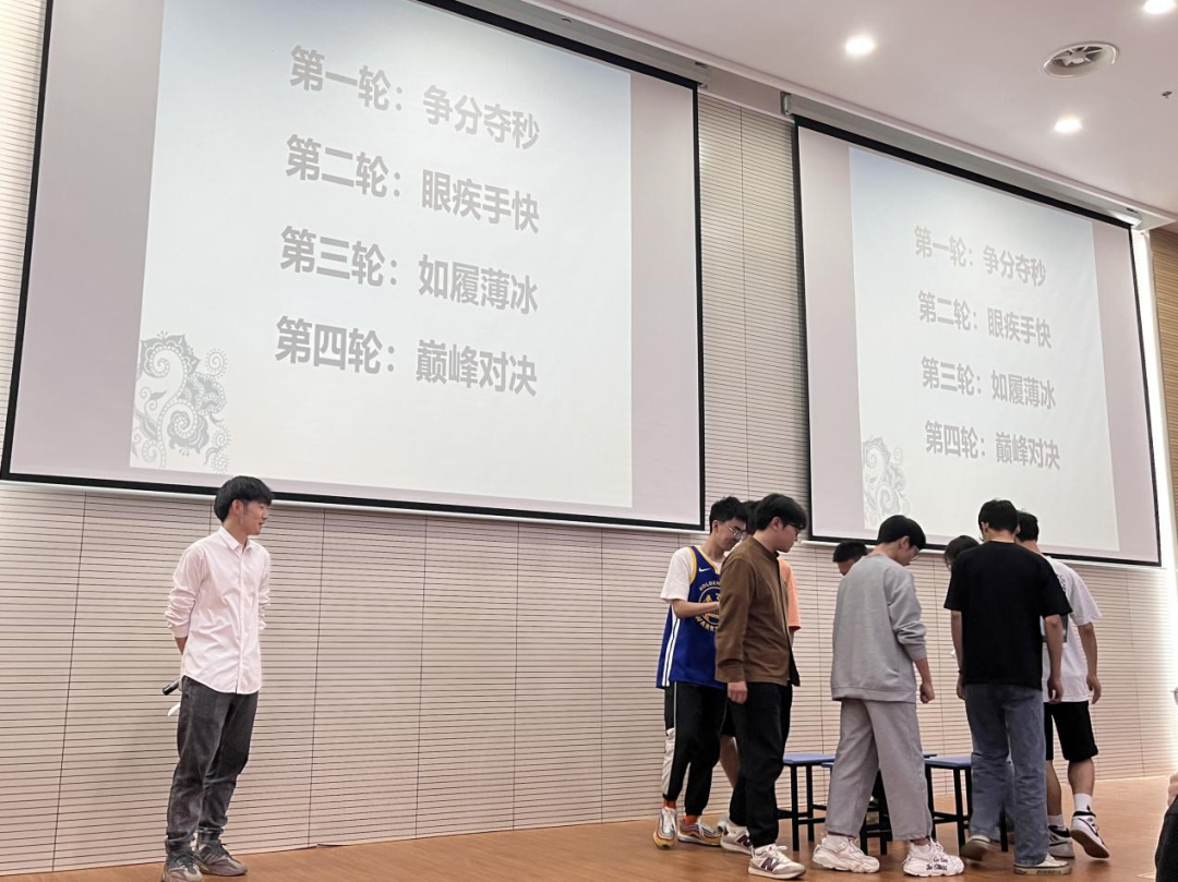 第一轮比赛项目名为争分夺秒,每个队伍在限定的时间内认真思考并作答。第二轮比赛项目为眼疾手快,需要每个小组进行抢答,答对得分,答错扣分。每位参赛选手都使出浑身解数进行抢答。第三轮比赛名为如履薄冰,每个参赛队伍可以在10分、20分、30分的题目中选择两道题目作答,答对得分,答错扣分,势必要在此时一决胜负。