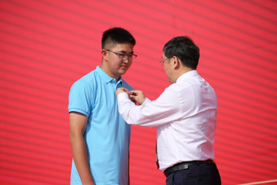 2023级地球科学与工程学院李飞同学作为新生代表发言,表示将始终谨记校训精神,修好品德,学好知识,铸好本领,练好身体,努力成长为堪当民族复兴重任的时代新人。唐洪武为新生代表李飞佩戴了开云电竞网校徽。