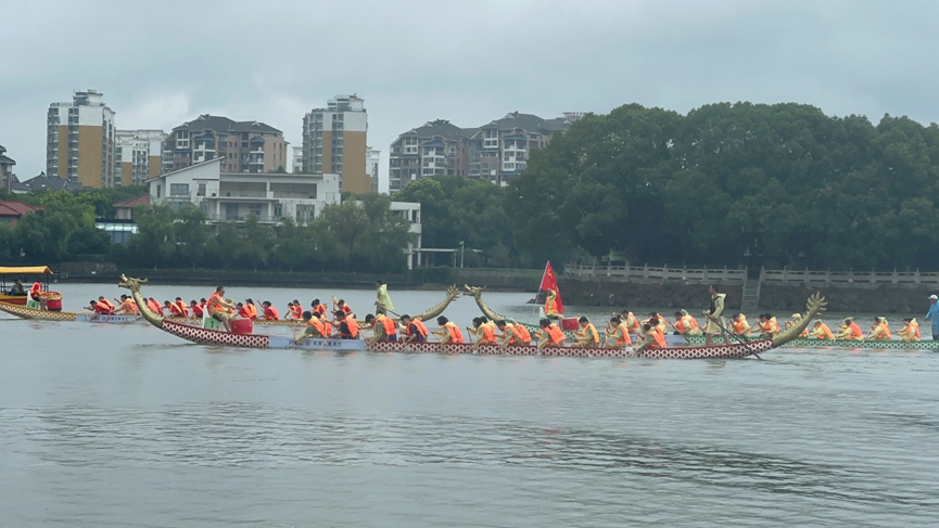 端午节是中国的四大节日之一,龙舟赛是中国传统的体育竞技项目,在我国都有着悠久的历史和广泛的群众基础。在这次比赛中,有8支参赛队伍应邀前来,整装待发。随着哨声响起,划手们在鼓点的带领下,整齐划一奋楫前行,每支队伍都齐心协力、团结协作,一次又一次地挑战自我、超越自我。