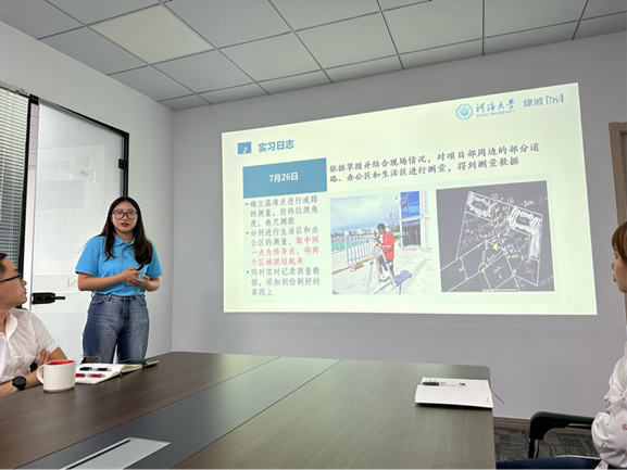 为总结、展示实践团成员的实践成果,校企双方组织开展了成果汇报。3个小组分别从课题背景、课题难点、课题开展情况、经验总结等方面进行了汇报展示深入的剖析和分享,以自信大方的姿态展现了河海学子敢吃苦、肯钻研的实习实践精神。项目群负责人、产品管理部分管领导、综合管理部负责人、各带教老师分别做了细致点评,他们对同学们的实践成果表示了充分肯定,同时对同学们认真的工作态度、优秀的表达能力进行了赞许。团队成员也纷纷表示:“能把学校里学到的知识运用到真正的实际工作中,并在工作中又学到不一样的技能,真是一件令人兴奋的事情!”