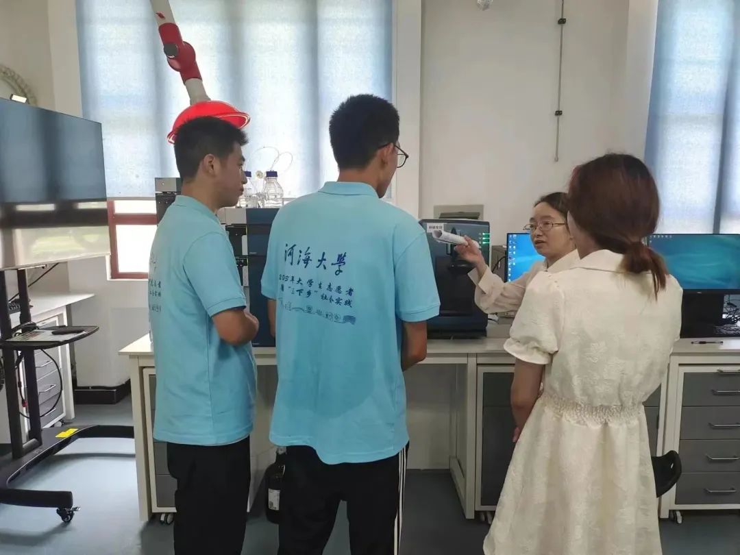 沈燕研究员听取介绍,并对光谱仪法检测农产品重金属、农药残留、病虫害技术发展前景高度看好、对光谱仪法农产品安全检测技术的高度期待,并对河海学子实事求是、敢于创新、勇于探索的精神给予高度肯定。
