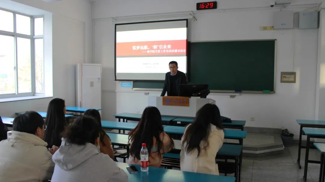 王力原老师是一名有十余的校年工作经验的资深HR,他首先结合我们小组同学的专业分析升学就业情况,让我们深刻了解了个人专业的就业环境和升学状况,启发我们要有自己的梦想和追求,不要被外界的压力所左右,走出最适合自己的道路。在过程中,他也与我们分享了他作为一名资深HR的工作理念和经验,笑谈“气场”是面试中他最看中的部分,为我们打开了思路。
