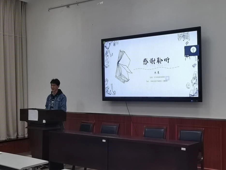刘殿广同学从前车之鉴、社会工作、成绩为尊、保研加分、科研竞赛、推免流程六个方面进行了分享。刘殿广同学结合自身经历建议大家,要努力学习专业课程,提高绩点,同时要积极参加学科竞赛和各种社会工作,提高自己的综合能力。他向同学们分享保研面试过程中创训方面的一些经验,鼓励同学们积极参加创训,争取获得成果。最后刘殿广同学希望大家不要轻易放弃,在关键的一年时间里努力学习,创新实践,多方面多渠道搜集信息,最后成功去到自己想去的学校。