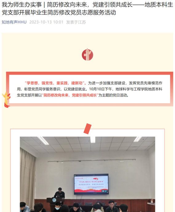 2023年,地学院传媒中心在开云电竞网团委、地学院党委的指导下,秉承着为广大师生提供优质信息服务的宗旨,有效运营学院各个新媒体平台,为学院提供符合新时代要求的信息服务,对外展示好地球科学与工程学院的独特风采。其中,借力学院网站、“知地有声”微信公众号等新媒体平台,本中心开设学风建设、党建学习、心理建设等多个主题教育专栏,地学榜样、我为师生办实事等特色专栏,不断关注思想教育、志愿服务、社会实践等多方面信息,宣传各项活动,共计知地有声推送近200篇,学院官网学工板块发布内容80篇。本中心致力于为院内师生提供多方位信息服务,坚决做好舆情管理工作,积极构建良性网络生态环境。