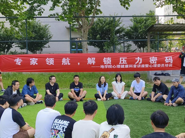 为营造良好的校园心理健康氛围,帮助同学们缓解心理压力,促进同学们身心健康发展。5月17日下午,地学院邀请校心理健康教育中心闫明老师,在江宁校区西操场举办“专家领航,解锁压力密码——心理健康科普讲座暨心理委员培训” 户外心理健康教育活动,研究生辅导员程池超老师、本科生辅导员张雨佳老师以及地学院各年级心理委员、学生代表参与了本次活动。