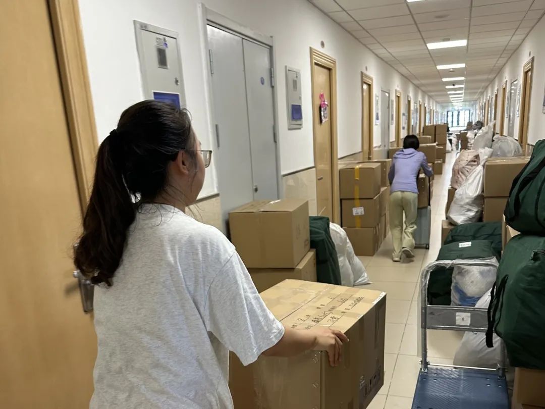 搬迁过程中,地学院广大学子和青年志愿者勠力同心,积极将打包的行李提前运送至楼下,提高搬迁效率。他们不惧高温日晒,协助搬运行李,保障搬迁工作的顺利完成,尽显地学院学子担当。