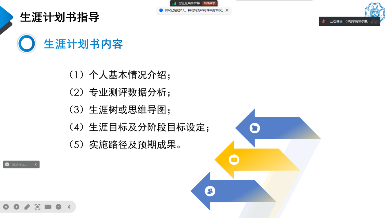 常孝廉老师首先向大家介绍了大学生职业生涯规划大赛的背景和意义,强调本次比赛旨在以赛促学,帮助同学们掌握科学的生涯规划方法,指导个人生涯发展,随后详细介绍了大赛的流程和安排,包括报名方式、初赛和复赛的评选标准等内容,希望同学们能够抓住这个机会,积极参与职业生涯规划大赛,全面评估自己的兴趣、技能和价值观,明确个人目标,不断提升自己的综合素质和就业竞争力。