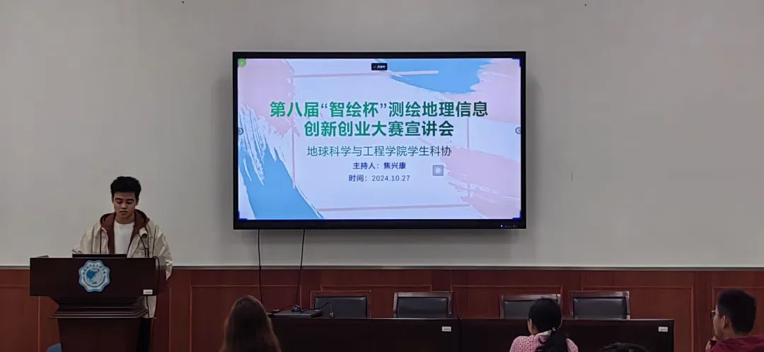 2024年10月27日,第八届“智绘杯”测绘地理信息创新创业大赛宣讲会于笃学楼107,金坛校区B213两地同步召开。此次宣讲旨在提高同学们的创新创业、科研能力,加强同学对专业知识的了解,提升同学们对后续双创赛事的热情,吸引了众多同学的参与。大会邀请何丽娜老师为同学们讲解大赛相关事项。22级焦兴康同学为此次宣讲主持人。