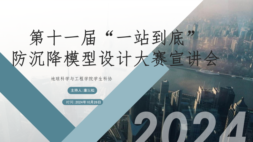 为帮助同学们更加全面了解比赛细则,打好比赛基础,10月26日晚上18:30分,地学院科协于江宁校区笃学楼208与金坛校区B126举办第十一届“一站到底”防沉降模型设计大赛宣讲会。本次培训由地球科学与工程学院讲师董梦龙担任主讲教师,往届优秀获奖选手陈亮分享参赛经验。