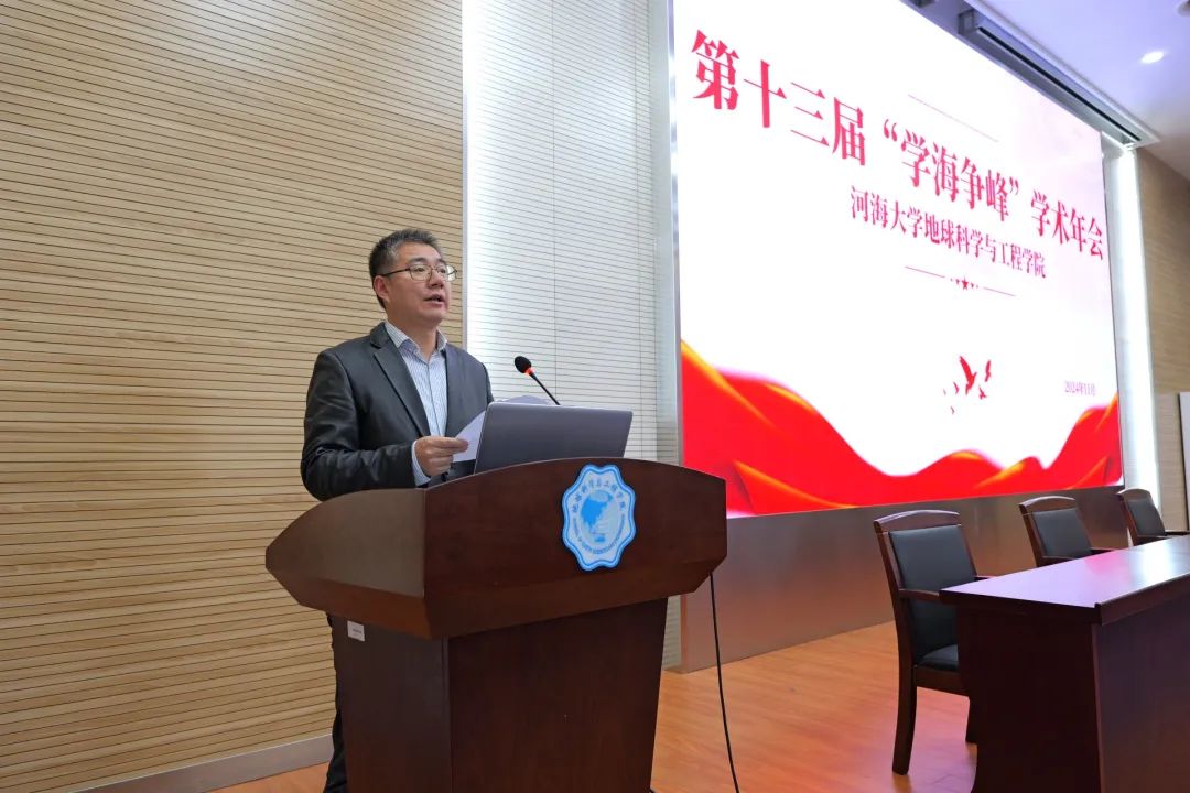 河海梧桐行秋晚,落日偏傍学窗明,为塑造积极的科技创新精神,营造浓厚的校园学术氛围,充分整合科研力量和利用学术资源,增强研究生的创新科研意识,不断提高研究生参与学术交流的能力,11月15日下午,地学院于笃学楼208举办第十三届研究生“学海争峰”学术年会。
