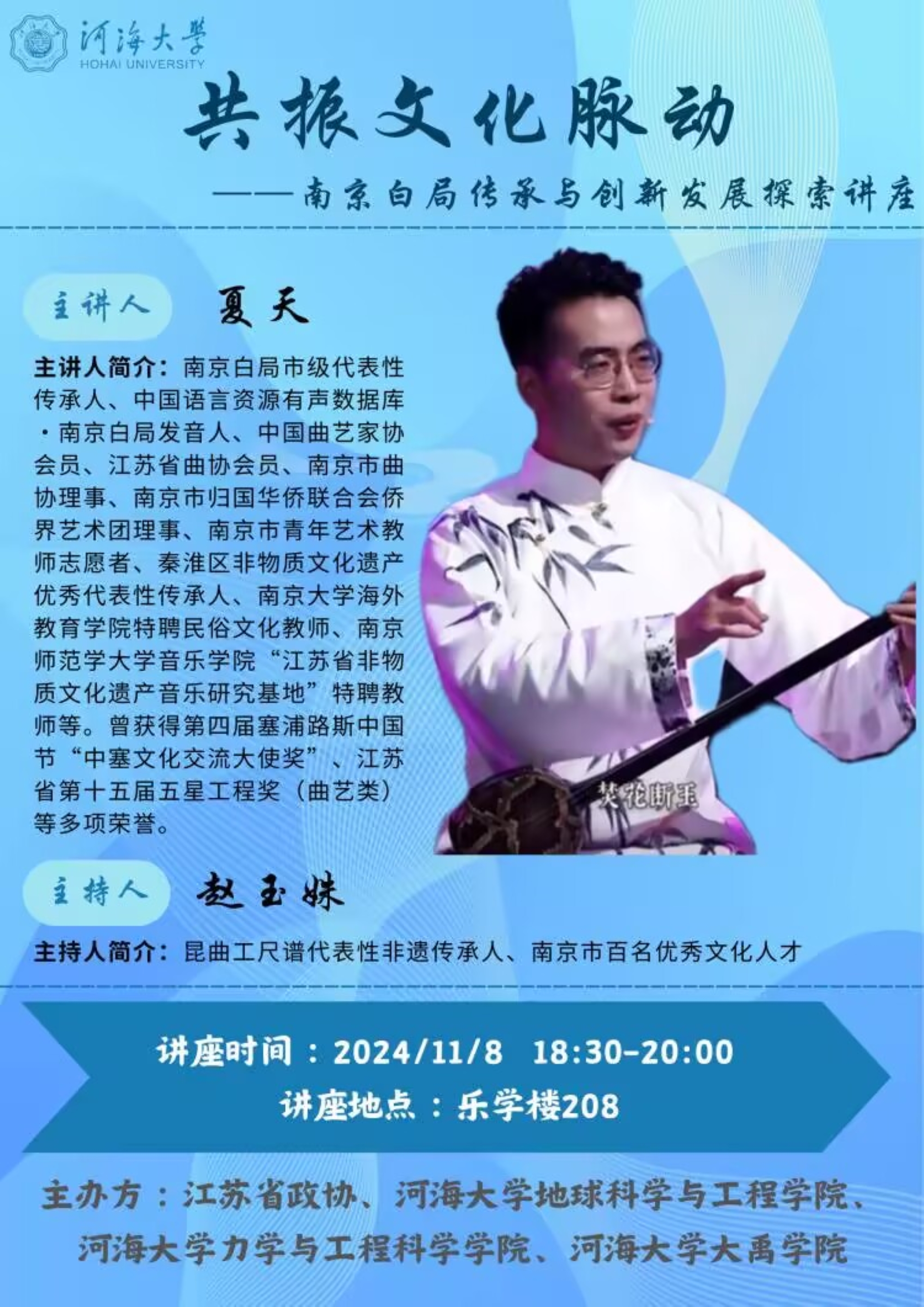 同时为拓展学生课余兴趣,组织开展“南京白局进校园”、“地学院2024新生杯辩论赛”等活动,丰富同学们课余生活,培养同学们动手能力与思维创新能力。