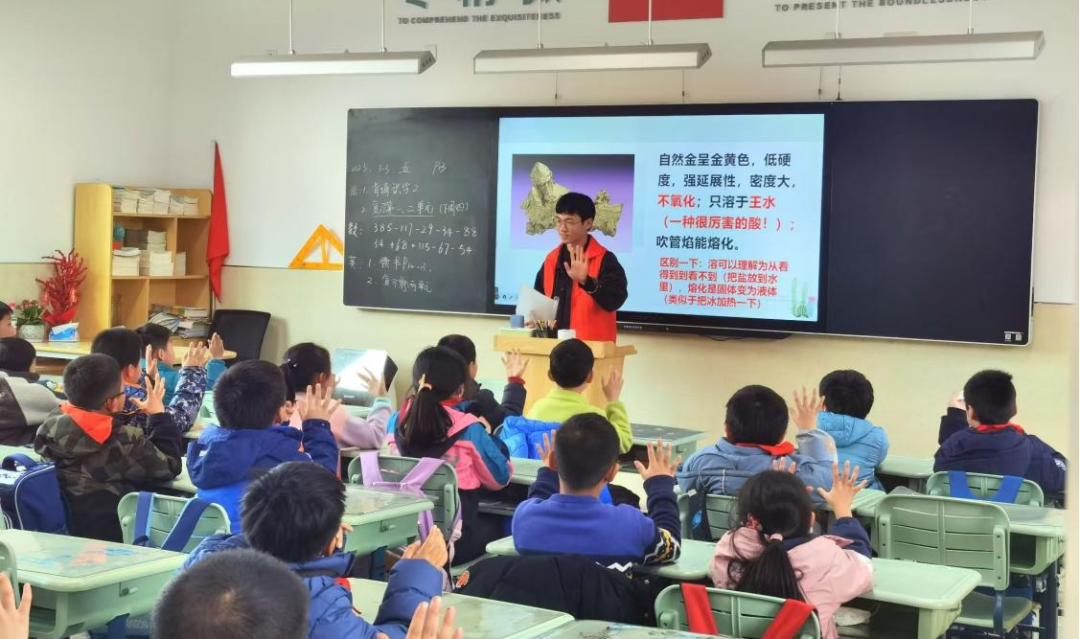 作为一名地学学子,王龙同学深知自己肩负着学习好、传播好专业知识的使命。他多次走进南京诚信小学、雨花外国语小学,结合自己的专业,为孩子们讲授地质知识。通过互动课堂公益授课,激发小朋友对科学的热爱和对自然的敬畏。累计授课31次,教授1100余人次。在睢县郝口支教期间,他担任5个年级孩子的地理老师,每天忙碌于教学一线。白天上课,晚上备课,帮孩子们打饭,送孩子们回家,他既是孩子们的老师,也是孩子们的大哥哥,最终以出色的教学成绩完成了作为一名支教老师的使命。