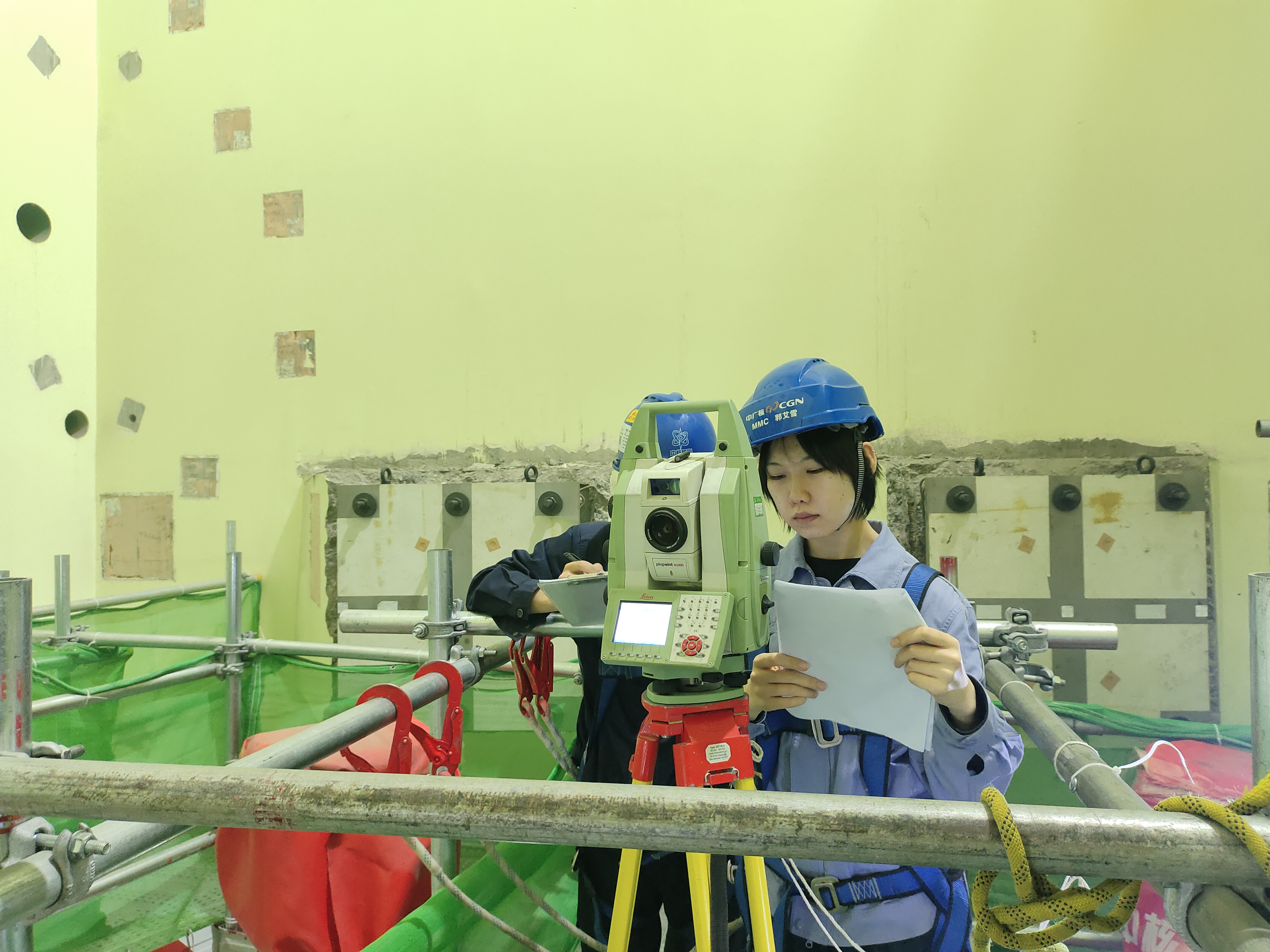 通过求学期间的奋斗磨砺,在参加各大型企业公司的招聘会中,郭艾雪经过双向选择、仔细分析,最终进入中广核集团中广核工程有限公司。通过两年多的职场生活,结识了众多优秀的同事,由一名助理工程师脚踏实地、稳扎稳打成长,逐步承担起核电厂心脏部位的工作:核岛及周边厂房的安装测量管理任务。在校园中吸收的专业知识支撑起其对多家承包商开展管理的技术底气,能够独自带队前往东重、上电等公司开展赴厂三维测量验收,以及设计施测精度要求高、作业环境复杂的专项测量工作。