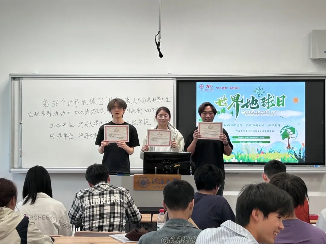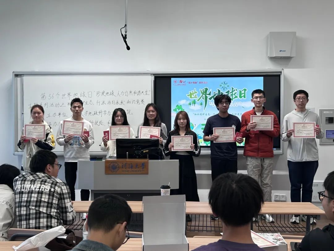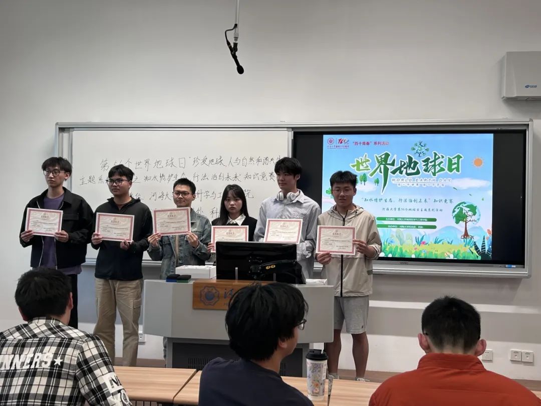 习近平总书记强调:尊重自然、顺应自然、保护自然,是全面建设社会主义现代化国家的内在要求。为深入践行生态文明理念,引导学生树立正确的自然资源观与法治观念,增强对水生态保护的认知,提升科学环保素养,地球科学与工程学院研究生会在开云电竞网常州新校区2号楼A112开展主题为“珍爱地球,人与自然和谐共生”的第56个世界地球日系列活动——“知水情护生态,行法治创未来”科普知识竞赛。