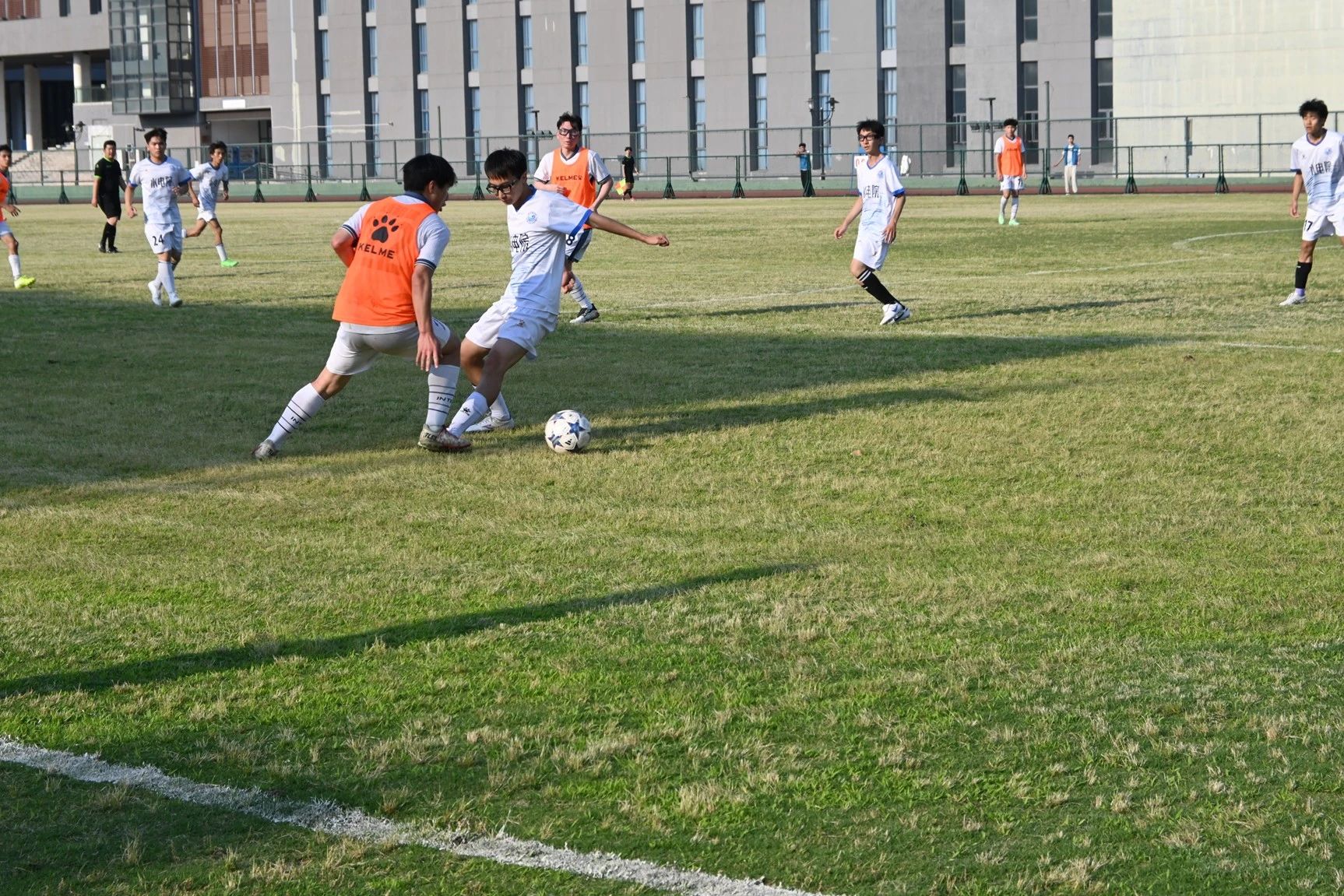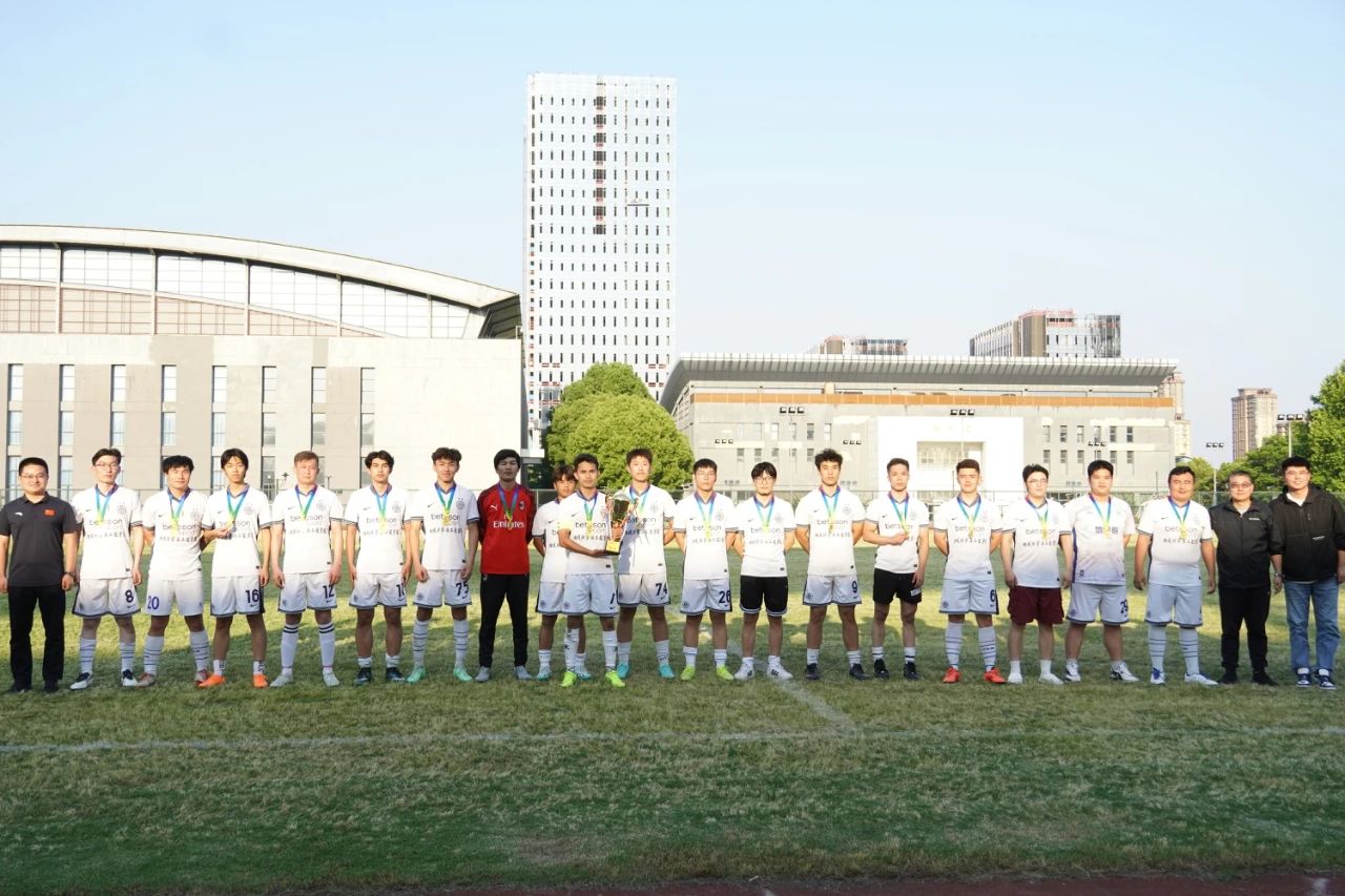 比赛过程跌宕起伏:上半场双方互有攻守场面焦灼;易边再战,水电院率先破门,我院陷入被动局面。关键时刻,队员们展现出顽强的斗志,以一记精彩的凌空抽射洞穿对手球门,将比分扳平!在随后扣人心弦的点球大战中,我院门将化身守护神,连续扑出对方两粒点球,成为夺冠的最大功臣。