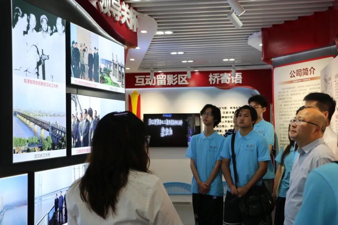 本次活动,学院一行首先来到了中铁大桥局二公司的企业文化展厅,在工作人员的带领下,深入了解了企业在桥梁建设领域的辉煌成就与技术创新。对企业在超大跨度桥梁、深水基础施工、智能建造等领域的核心技术有了更直观的认识。