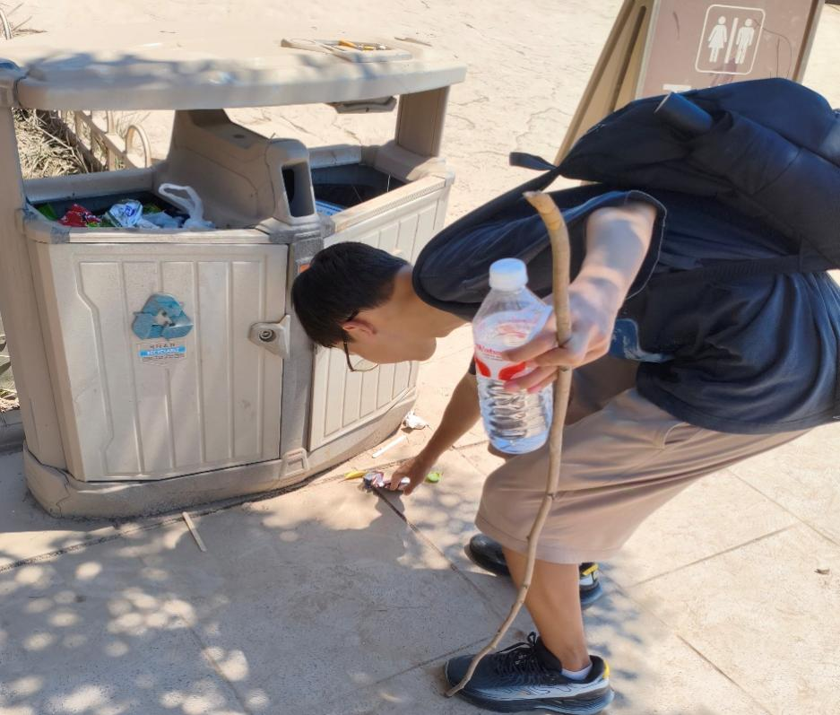 在实践路上,不仅要观察生态,还要重视生态保护。实践过程中,团队成员在库区观景台周边开展垃圾清理,分类收集塑料瓶、包装袋及杂物若干,更加深刻地感受到黄河环境治理的不易以及国民环保意识提高的重要性。