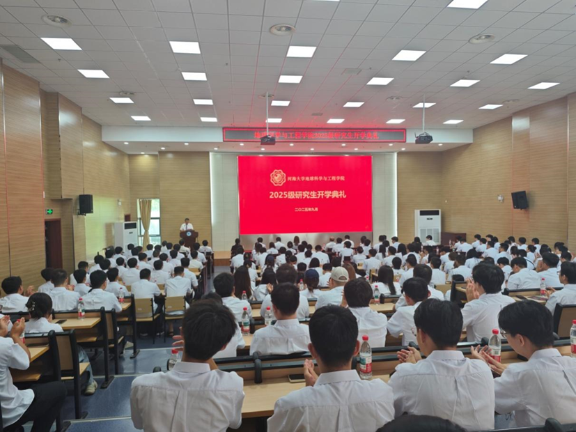 2025年9月5日下午,地球科学与工程学院2025级研究生开学典礼在江宁校区笃学楼208隆重举行,学院院长刘瑾、党委书记马孟珂、副院长赵燕容、副院长肖儒雅,以及各系所负责人、导师代表和234名博、硕士同学出席开学典礼,典礼由党委副书记、副院长张玲彬主持。