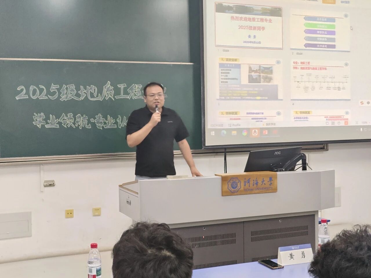 地质系主任黄勇老师从历史沿革、学科状况、师资队伍、实验条件、科学研究五个维度全面的介绍地质专业学科优势,并提出作为水利特色院校的地质工程专业,承载着服务国家水利、生态保护的重要使命,激发新生的专业认同感与责任感。地质系副系主任黄国娇、杨蕴、李云剑对各自研究方向进行解读,明确指出“学什么、怎么学、未来向哪走”的专业学习路径。