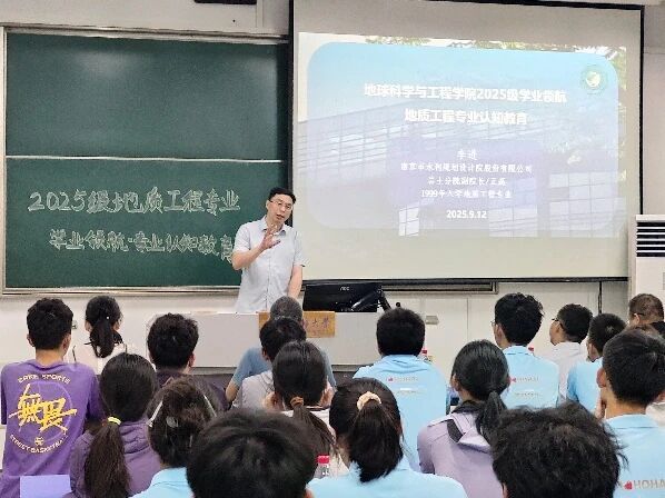 2025年9月12日下午2时,“地学院地质工程专业学业领航·专业认知教育”活动在励学楼A109教室顺利举行。本次活动讲座由学院教学副院长赵燕容主持,地质工程系主任黄勇、副系主任黄国娇、李云剑、杨蕴,南京市水利规划设计院股份有限公司岩土分院副院长李进、中国能源建设集团江苏电力设计院有限公司助理工程师李博林出席本次活动。