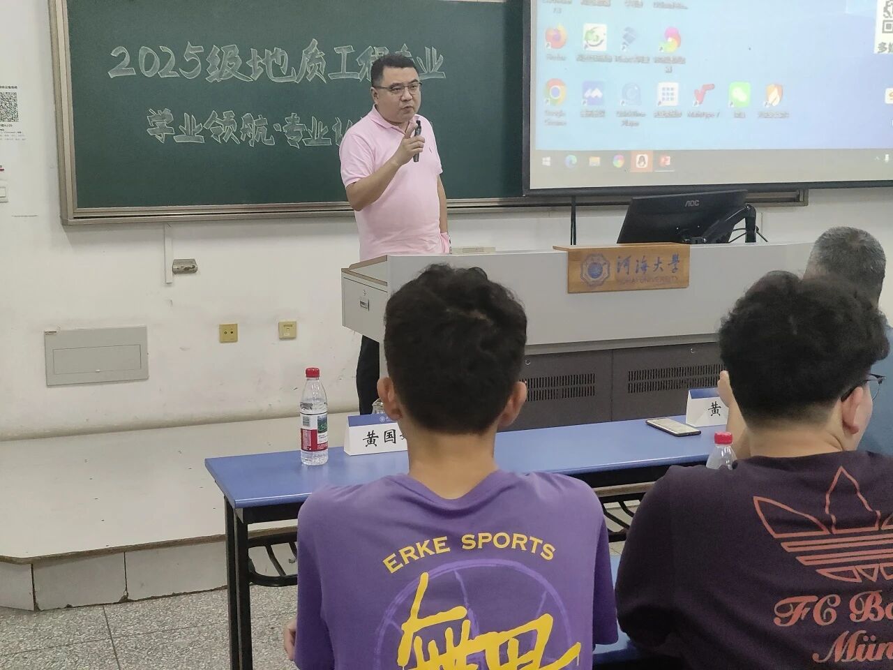 本次讲座为2025级新生启航周学业领航系列活动,为地学院2025级新生系统讲述地质工程专业学科内涵、专业前景、就业方向,从“升学方向选择”“实习机会获取”“未来专业学习”等具体问题个性化建议入手助力新生提升专业认知,深化专业内涵,提升专业自信具有重要作用。